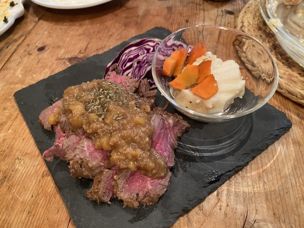 そして豆乳のグラタンとパイナップル漬けしていたローストビーフ