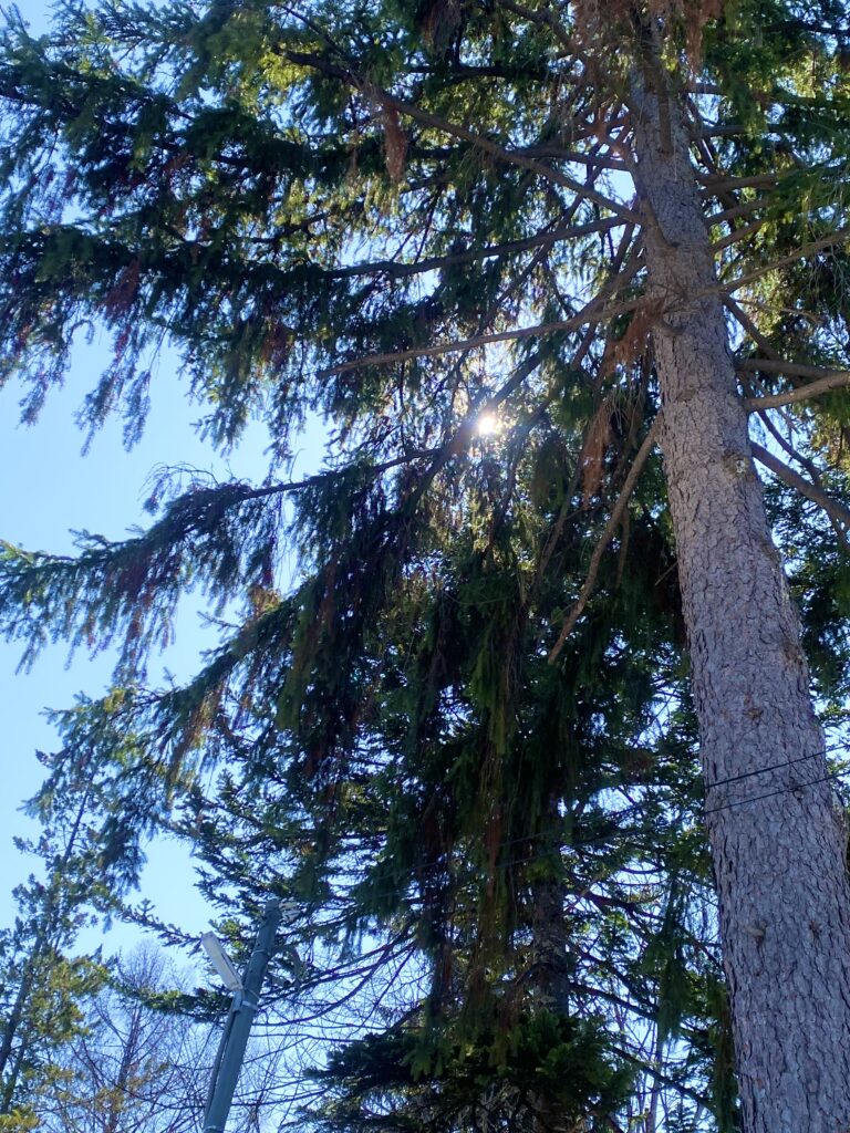 帰りは、ちょっと森の中に入らせてもらい、雪が解けてむき出しになった土の上に立たせていただきました。